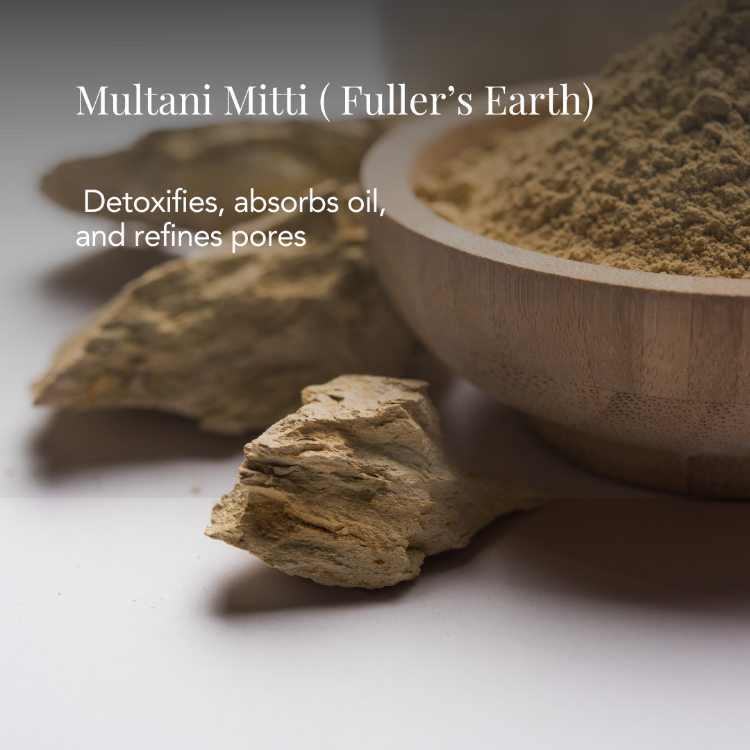 ✔ Rose Clay – A mild, detoxifying clay that refines pores, eliminates impurities, and tones skin while remaining soft and non-drying.